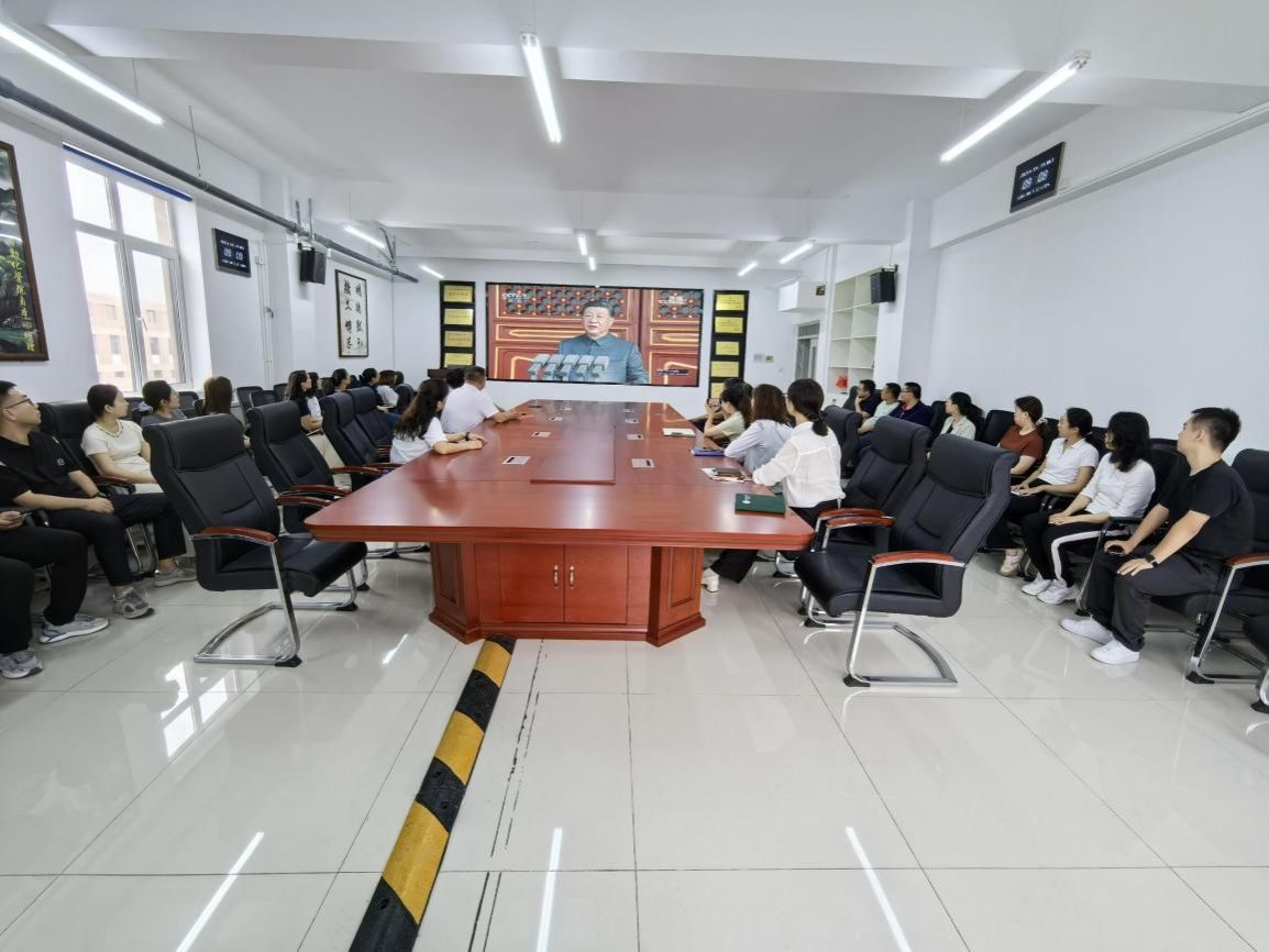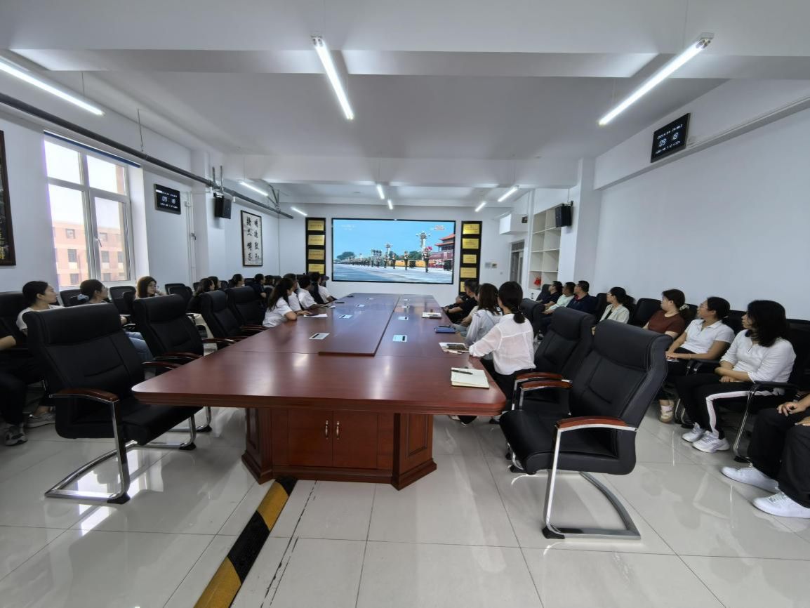 直播画面开启后,会场内秩序井然,全体教职工目光紧紧聚焦屏幕,神情庄重而激动。当庄严的国歌奏响、五星红旗冉冉升起之际,全体教职工心潮澎湃;当徒步方队迈着铿锵有力的步伐通过检阅台、战旗方阵承载着历史记忆迎风招展时,大家深切感受到革命先辈的精神传承;当装备方队如钢铁洪流滚滚向前、空中梯队以精准队形呼啸而过时,体系作战的强大威力与新域新质战力的蓬勃生机令人振奋。尤其是受阅的国产现役主战装备中,多部首次公开亮相的先进装备展现出我国国防科技的过硬实力,让现场教职工激动不已、倍感自豪,爱国热情与民族自豪感油然而生,立足岗位开拓创新的使命感愈发强烈。
